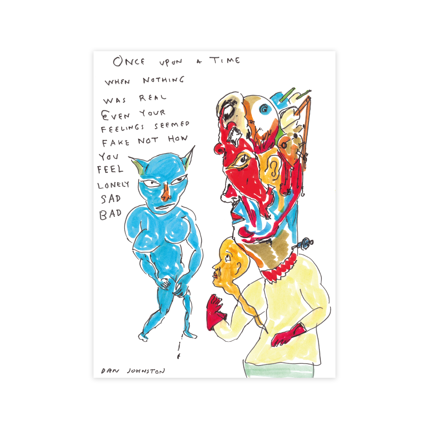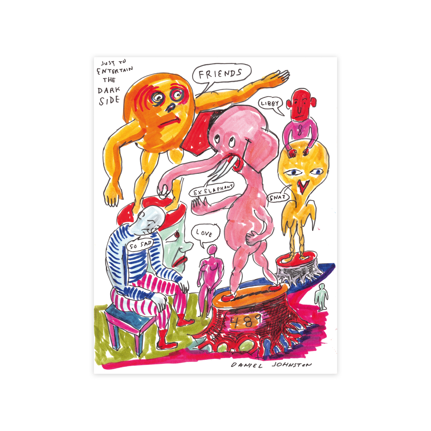 DANIEL JOHNSTON FUE UN MÚSICO Y ARTISTA ESTADOUNIDENSE MUY SINGULAR. NACIÓ EN 1961, EN ESTADOS UNIDOS, Y SE HIZO CONOCIDO POR SU ESTILO HONESTO Y EMOCIONAL. GRABÓ CIENTOS DE CASSETTES CASEROS, QUE REGALABA O VENDÍA ÉL MISMO. SU OBRA CARGADA DE UN SIMBOLISMO MUY PERSONAL SE CONVIRTIÓ EN UN PILAR DEL MOVIMIENTO LO-FI.